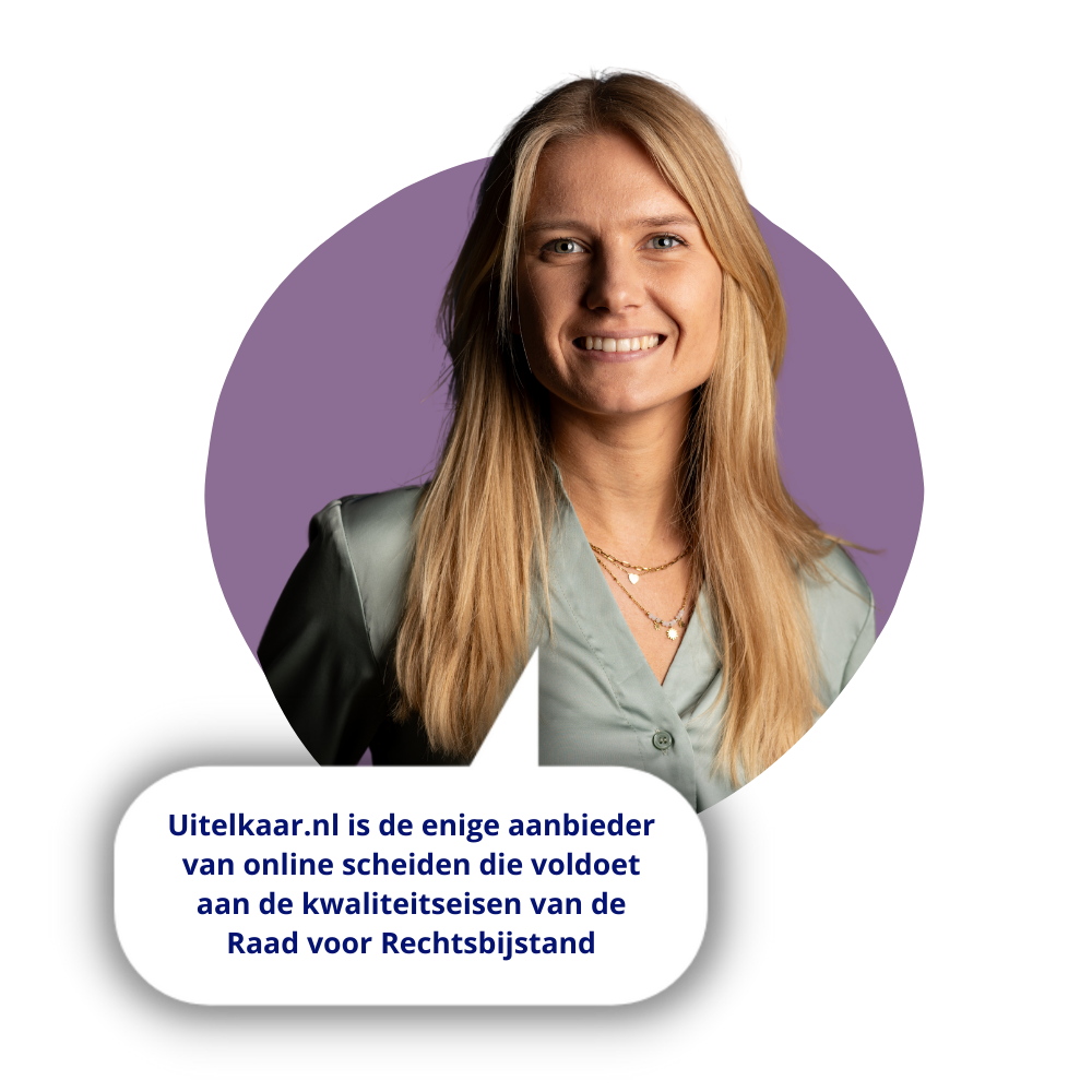 "Uitelkaar.nl is een fijne en duidelijke manier bij het ondersteunen van het regelen van een scheiding. je kunt in je eigen tempo aan de slag."